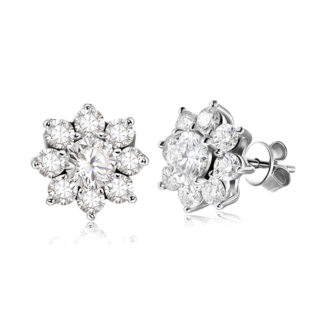 The Fleur Radiance Studs | Moissanite Flower Cluster Earrings in Sterling Silver